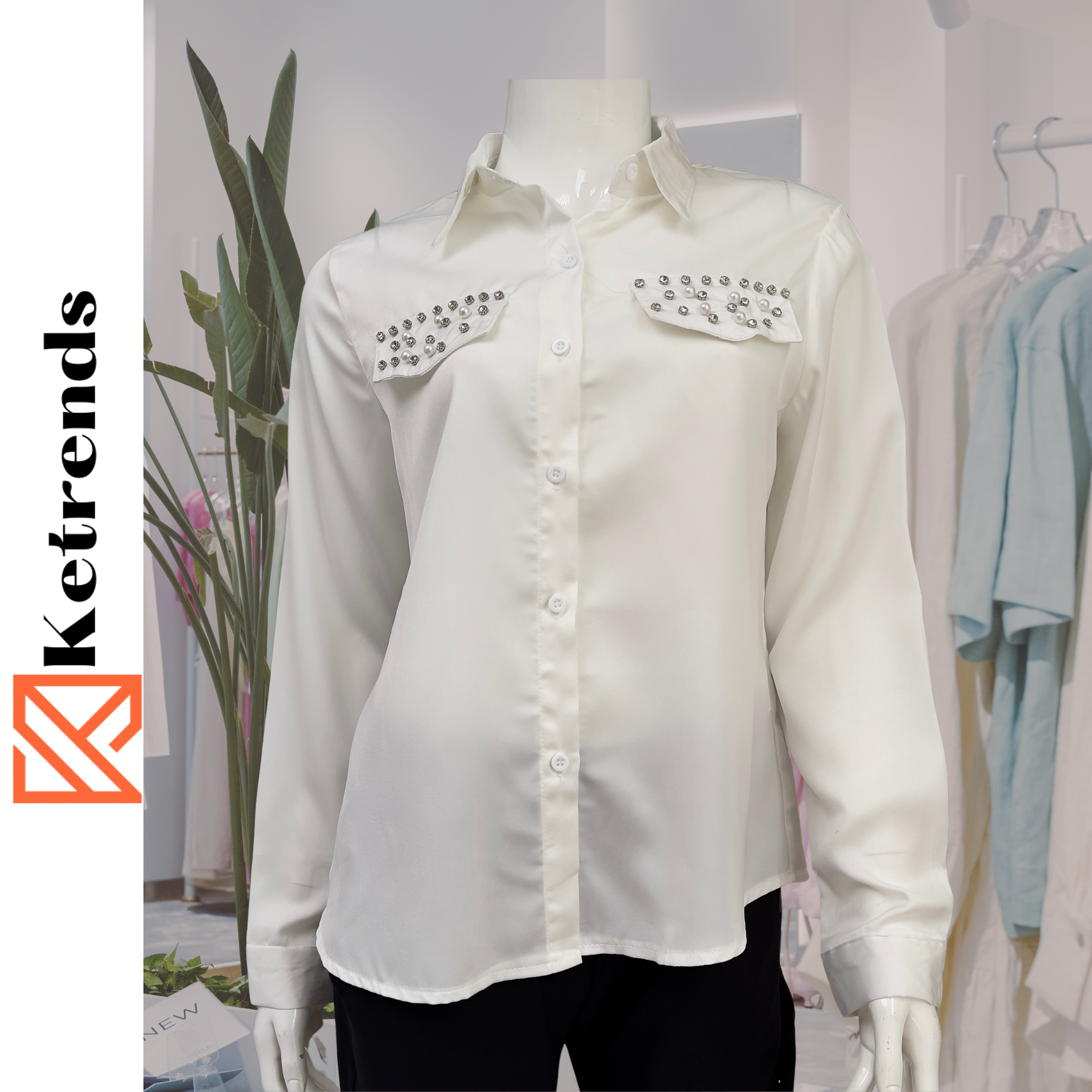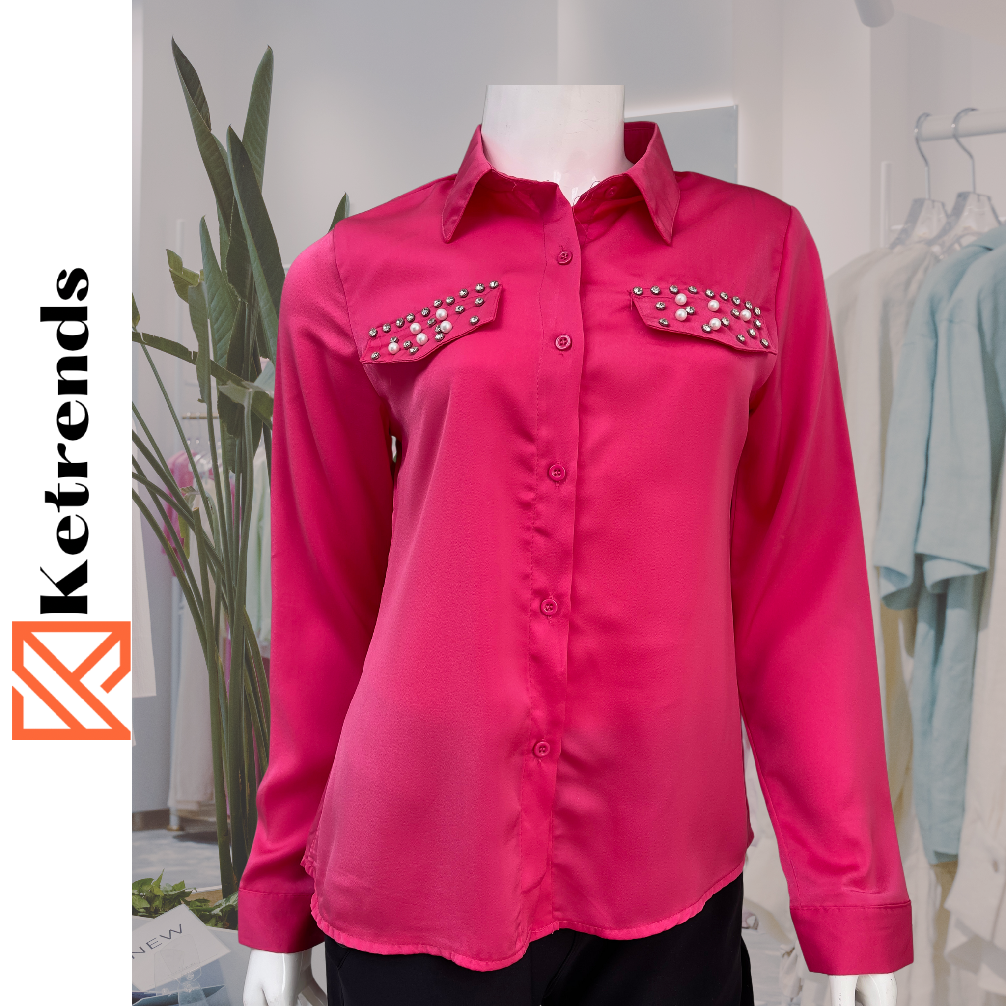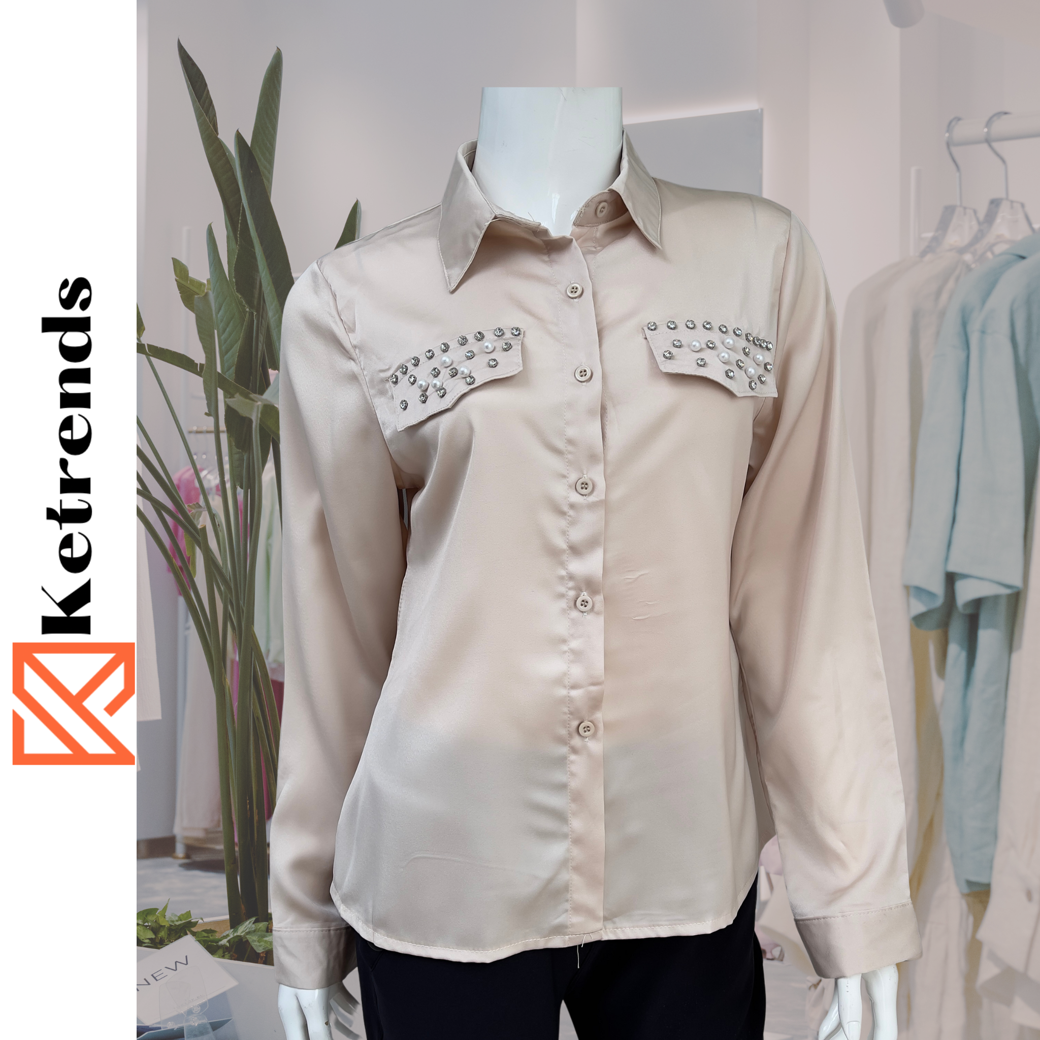 El material de la blusa satinada, dándole un brillo sutil.💠